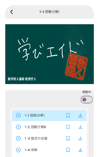 自学自習の質を高める重要なツールとして、生徒様専用のアプリをご用意。授業動画を無料で提供しています。